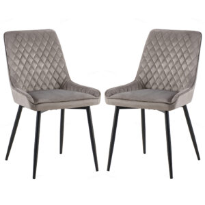 Bring refined elegance and contemporary comfort to your dining space with the Furniture in Fashion Niles Grey Velvet Dining Chairs. Upholstered in sumptuous grey velvet, these chairs feature a sleek and modern design that instantly enhances the look of any dining room or kitchen. Their soft touch fabric and minimalist silhouette create a sophisticated ambiance while offering a warm and inviting place to sit. Supported by sturdy black metal legs, the Niles dining chairs combine durability with style, making them ideal for everyday meals or special gatherings. The gently curved backrest and padded seat ensure lasting comfort, while the neutral grey tone blends seamlessly with a wide range of interior dcors. Crafted by Furniture in Fashion, one of the UKs leading furniture brands, this pair delivers stylish functionality and premium quality at an affordable price. FEATURES : Material : Velvet, Stainless Steel Finish : Grey, Black Chair with chenille covering in velvet soft effect Metal structure painted in grey velvet With its comfortable and contemporary design The Niles chair also brings a touch of style to your rooms with its soft velvet chenille upholstery, a very trendy fabric It’s perfect for turning every little moment into a special occasion Soft, elegant and easy to maintain for everyday use Perfect for couples, small dining spaces or adding to a larger dining set Provide excellent stability and a sleek modern finish Supports posture and ensures maximum seating comfort Available at an affordable price Images shown are for illustration purpose only DIMENSIONS : Height: 82cm Width: 60cm Depth: 47cm