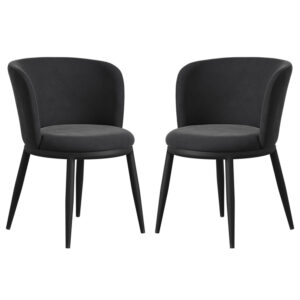 Introduce luxury and sophistication to your dining space with the Nixa Black Velvet Dining Chairs in Pair from Furniture in Fashion. Designed to make a striking impression, these elegant dining chairs feature plush black velvet upholstery that adds depth, richness, and a touch of glamour to both modern and contemporary interiors. Perfect for stylish dining rooms or statement dining settings, the Nixa Dining Chairs combine comfort with refined design. Their supportive structure and soft velvet finish ensure an inviting seating experience for everyday dining as well as special occasions, making them a versatile and elegant addition to your home. The Nixa Black Velvet Dining Chairs in Pair by Furniture in Fashion deliver the perfect combination of luxury, comfort, and modern design. With their plush velvet upholstery and supportive construction, they create an inviting and stylish seating solution that elevates any dining space. FEATURES : Material : Velvet Finish : Black What truly sets the Nixa Dining Chair apart is its exceptional design The black metal legs, angular yet graceful, provide a sturdy foundation while seamlessly complementing any interior aesthetic The subtle curve of the backrest adds a touch of fluidity, inviting you to settle in and savour your dining experience Elevate your dining space with this modern masterpiece, where style meets comfort in perfect harmony Black Velvet Upholstery Soft, luxurious fabric adds a premium feel Comfortable Padded Seating Designed for relaxed and supportive dining Supportive Backrest Enhances comfort during extended seating Sturdy Chair Construction Built for durability and everyday use Available at an affordable price Images shown are for illustrative purposes only DIMENSIONS : Height : 740mm Width : 560mm Depth : 580mm