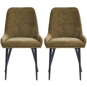 Upgrade your home bar or kitchen island seating with the Furniture in Fashion Omaha Olive Green Fabric Dining Chairs in Pair. These stylish Dining Chairs combine contemporary aesthetics with supreme comfort, making them an excellent addition to both modern and transitional interiors. Upholstered in high-quality Olive Green-toned fabric, they deliver a soft, inviting look that complements a wide range of decor styles. Crafted with attention to detail, the Omaha Dining Chairs feature a sleek design and sturdy construction that ensures lasting durability. Their cushioned seats and supportive backrests offer ergonomic comfort, making them perfect for long conversations or casual dining. Sold as a pair, these chairs are ideal for creating a cohesive and elegant seating arrangement in your space. Bring a touch of modern charm and everyday functionality to your home with the Furniture in Fashion Omaha Olive Green Fabric Dining Chairs in Pair. Stylish, comfortable, and built to last these Dining Chairs are the perfect choice for any contemporary living space. FEATURES : Material : Fabric Finish : Olive Green Minimalist design meets maximum style with the new Omaha Bar Chairs and Dining Chairs Crafted with a focus on clean lines and contemporary aesthetics, these pieces feature a fixed fabric seat atop sleek black metal legs The Omaha collection offers a simple yet impactful way to update your dining and bar spaces Soft to the touch and visually appealing, adding warmth and elegance to your interior Provides excellent support and comfort, perfect for extended seating Solid frame construction ensures long-lasting durability and stability Integrated footrest enhances comfort and promotes better posture while seated Clean lines and neutral tones make these chairs a versatile fit for various decor themes Perfectly matched pair, ideal for kitchen islands, home bars, or dining counters Fabric upholstery is designed for easy cleaning and everyday use Ava