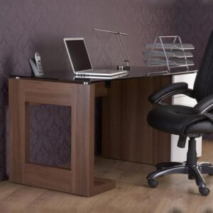Add a touch of modern elegance to your workspace with the Furniture in Fashion Sorbose Black Glass Top Laptop Desk. Featuring a sleek black glass top combined with a stylish walnut and white finish, this desk offers a contemporary design that seamlessly blends into any home office or study area. The contrasting materials and colours create a visually appealing piece that not only enhances your interior but also provides a practical solution for your working or studying needs. The Sorbose Laptop Desk is more than just stylishit is designed for functionality. The perfect blend of traditional and contemporary furniture, the Sorboseis a strong, attractive desk with ample storage space. It features 2 stationery drawers and a large filing drawer, and the Walnut finish and glass top is complemented by the high gloss white finish on the front of the drawers. The floor support offers a raised platform to keep your CPU, making this desk both functional and elegant. Elevate your productivity with this sleek and modern desk that combines beauty and practicality effortlessly. Upgrade your home office with the Furniture in Fashion Sorbose Black Glass Top Laptop Desk in Walnut and White, a perfect blend of modern design and practicality for your daily work or study needs. FEATURES : Material : Black Glass Finish : Walnut And White Walnut and white executive computer desk Black tempered glass work top with white high gloss drawer fronts Filing drawer and 2 large storage drawers Under-desk CPU storage Stylish chunky legs on a sturdy design The sleek black glass surface is easy to clean and adds a touch of luxury to your workspace Suitable for a variety of tasks, from working on your laptop to writing or studying The combination of walnut, white, and black glass creates a chic, contemporary look that complements any dcor Filing drawer and 2 large storage drawers Available at an affordable price Images shown are for illustration purpose only DIMENSIONS :